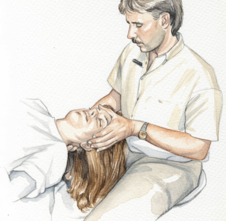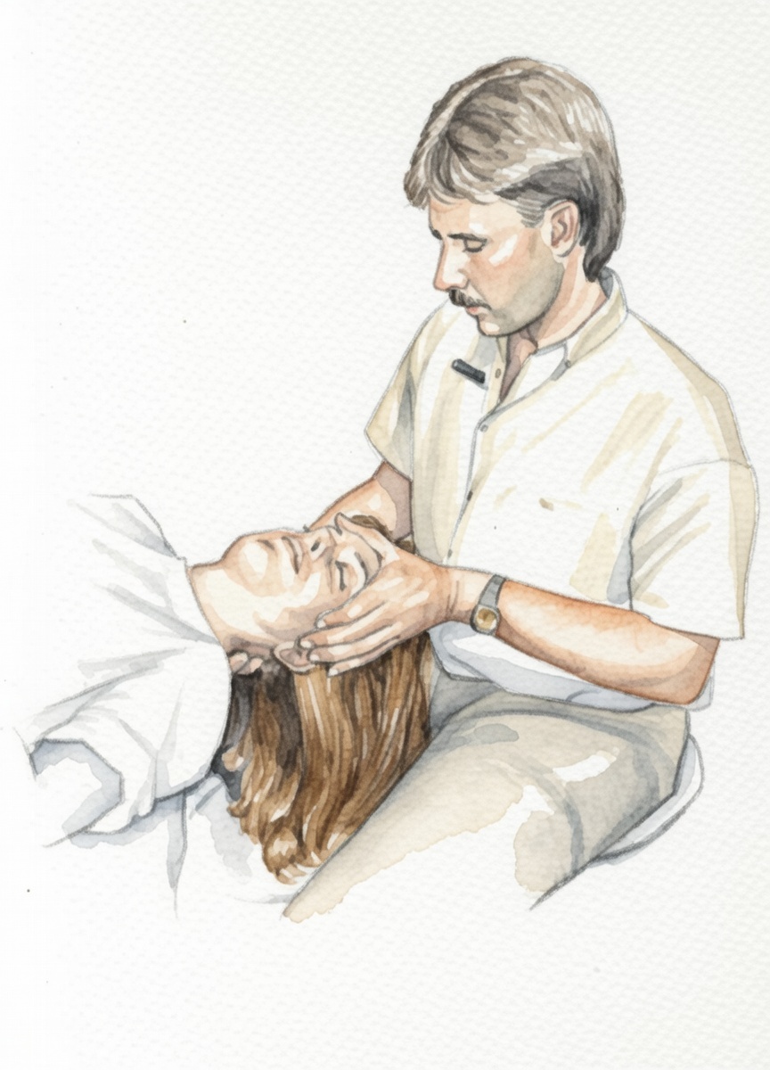 To improve MDB function and reduce headache and related symptoms, a craniosacral therapy (CST) protocol can be used that emphasizes cranial base work and CSF optimization. A typical sequence may include multiple prolonged CV4 type still points to encourage CSF function, followed by cranial base release; then balancing of the sphenoid and sphenobasilar synchondrosis; assessment and correction of maxillary dysfunction at the sphenoid; release of the vomer and ethmoid; followed by a second cranial base release and a final CV4 still point. This sequence aims to decompress the neurocranium from the Viscerocranium, improve cranio cervical alignment, enhance dural mobility, and support more efficient CSF flow, which can lessen referred pain into the head and face. Many individuals report a distinct sensation of decompression or lightness in the suboccipital region during or shortly after treatment.
